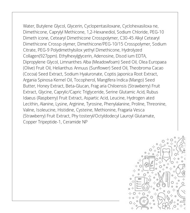 Anti-wrinkle eye cream contains regenerative collagen, easily regenerates damaged tissue around the eyes and boosts synthesis of collagen and elastine into your skin tocreat healthier, younger looking skin. Organic oils such as an argan, olives and mango seeds oils help to monisturise the sentitive area around eyes, added vitamins help to nourish and vitalize the skin creating the brighten effect.