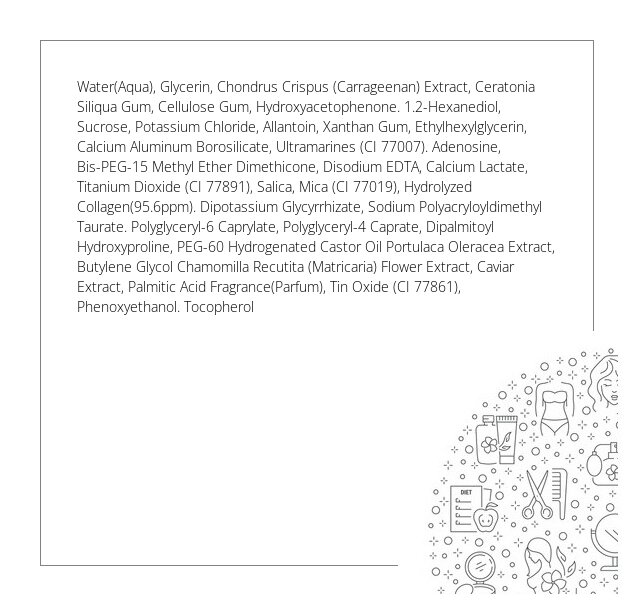 Hydrożelowe płatki pod oczy zaprojektowane do intensywnego nawilżenia i odżywienia delikatnej skóry wokół oczu, działają tonizująco i napinająco, redukują drobne zmarszczki oraz likwidują obrzęki. Płatki reagują na temperaturę skóry, lekko się na niej roztapiając, dzięki temu wzmacniają działanie i penetrację esencji w głąb skóry, co z kolei zapewnia działanie odżywcze, nawilżające i kojące skórę. Zawiera kolagen morski, który zmniejsza głębokość i ilość zmarszczek, uelastycznia i ujędrnia skórę. Również w składzie – ekstrakt z kawioru, alantoina i pantenol, które działają, nawilżająco, kojąco i odżywczo na skórę wokół oczu.